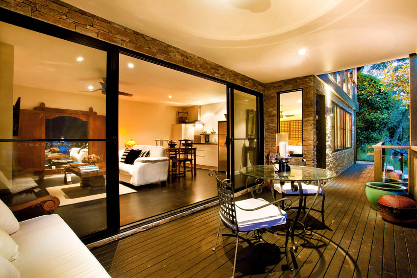 A cosy, luxurious self-contained suite perfect for a romantic getaway. Features a spacious bedroom with a queen-size bed and a large deck furnished for outdoor living.