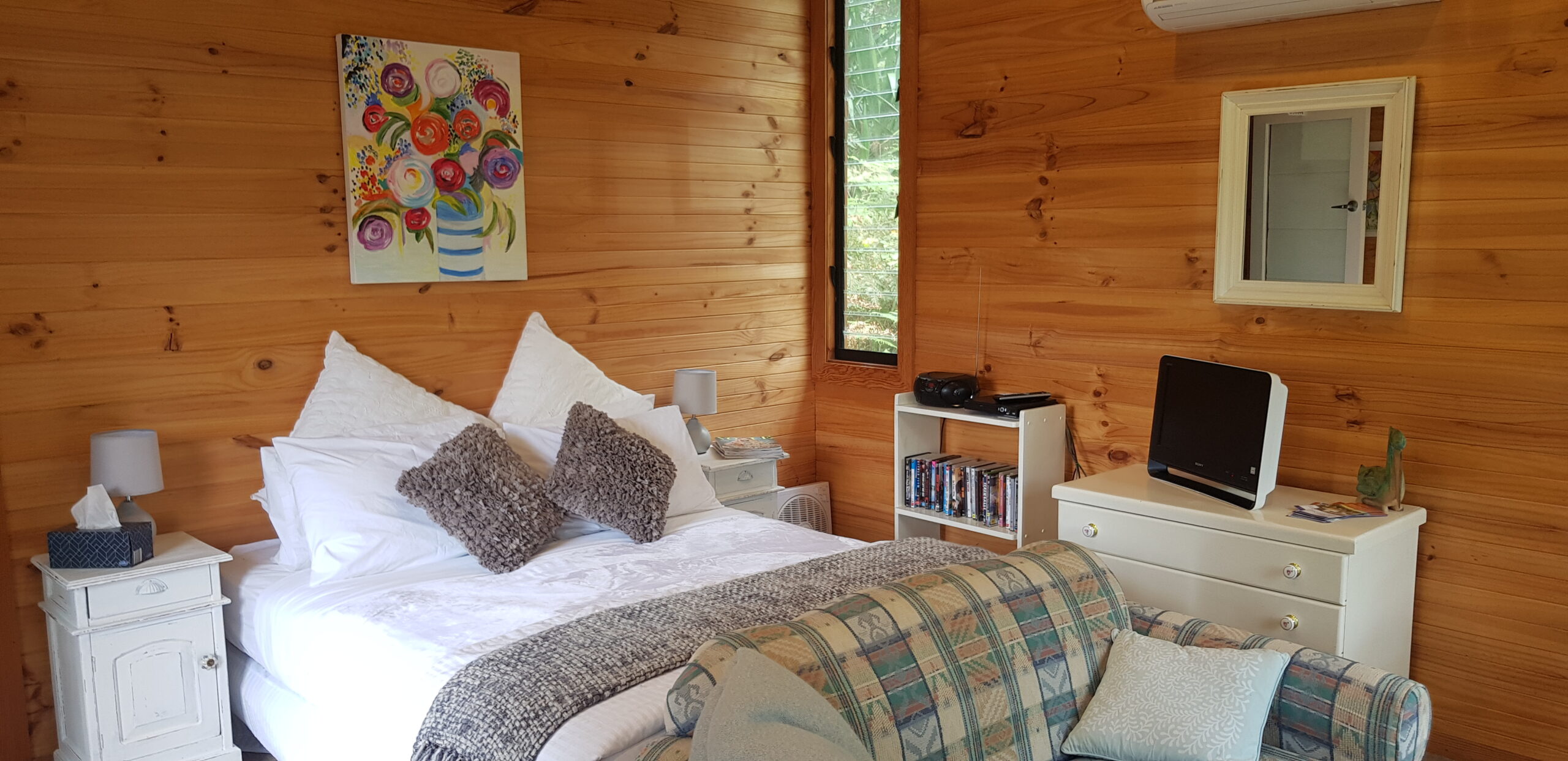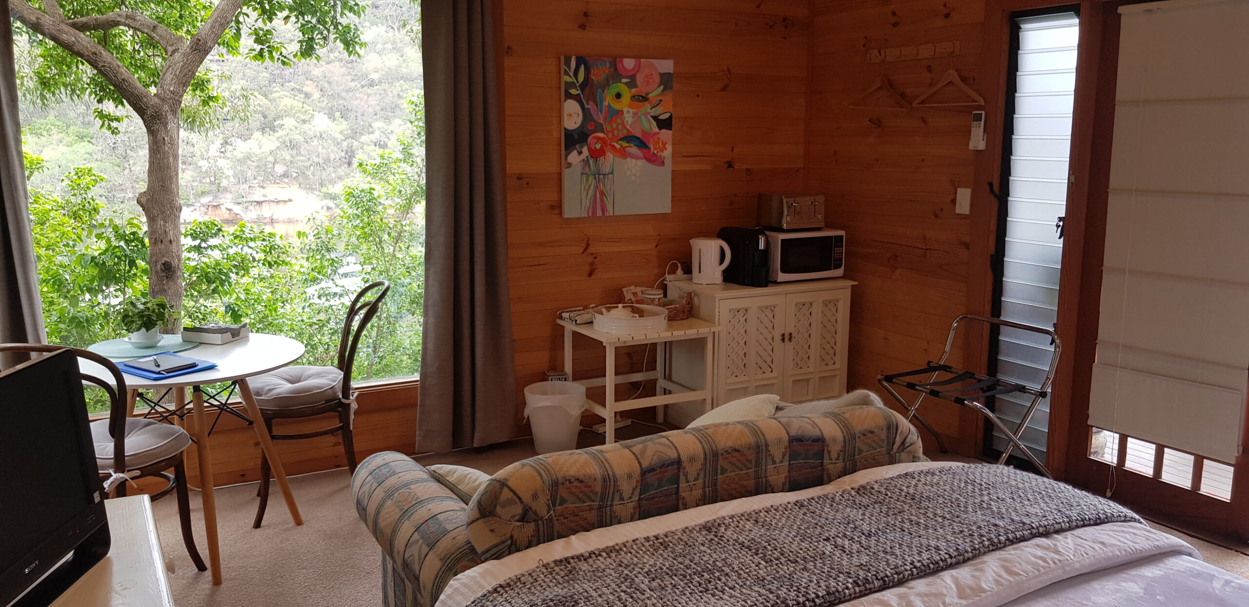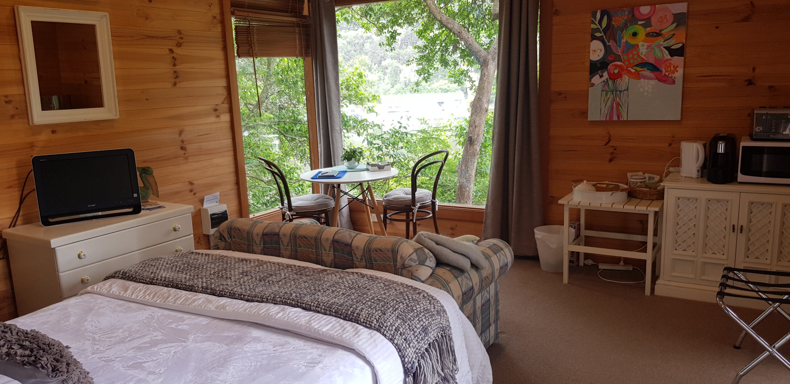 A lovely little studio apartment perched up in the tree tops with stunnng river views. Privacy plus, with a large deck complete with BBQ and table for al fresco dining