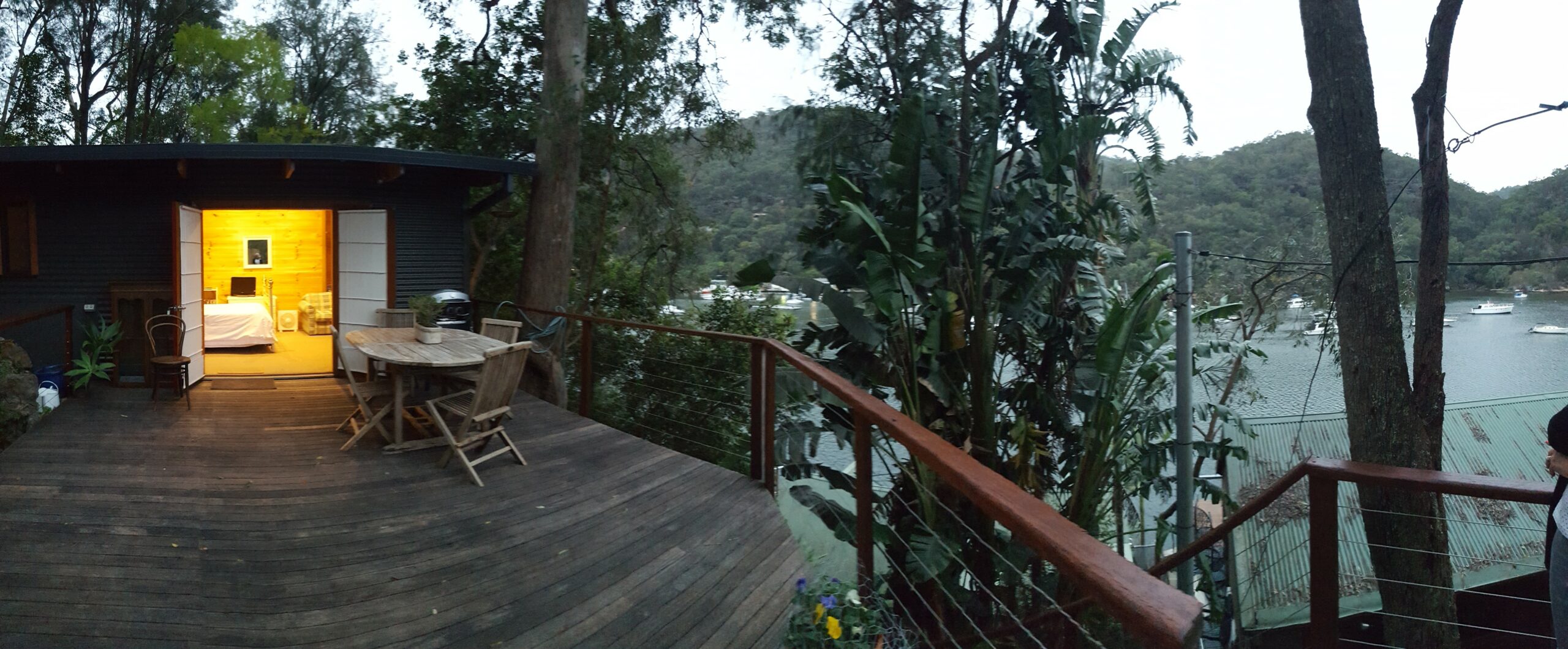 A short stroll to the Fish Cafe or Waterview restaurant allows you a leisurely night out without the hassle of organising a water taxi. Better still, organise a dining experience at the Berowra Waters Inn and they will pick you up from the private pontoon out the front of your accommodation. The Berowra Waters Tree house offers you an opportunity to escape the rat race and relax in this totally remote but accessible studio with excellent water views and an expansive deck complete with BBQ and table for al fresco dining. Please note that this accommodation does not have an oven or stove top but comes complete with a hooded BBQ, microwave, toaster, kettle, small bar fridge, crockery and cutlery.